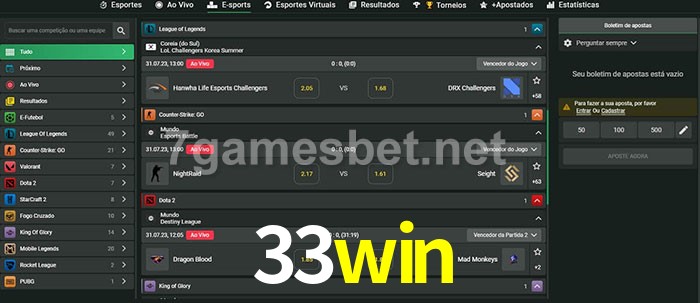 O 33win oferece uma grande seleção de opções de apostas em e-sports com probabilidades competitivas
